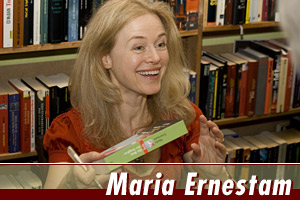 Ironie beweist Ernestam auch in der Beschreibung von Männern, die sie mit Hunden vergleicht, „beide sprechen auf leckeres Essen an, laufen gerne ohne Leine herum, und lassen sich leicht täuschen, wenn man sie nur richtig streichelt.“ Sie selber ist seit dreiundzwanzig Jahren verheiratet. Es hat auch Krisen gegeben, „aber wir haben uns immer wieder füreinander entschieden“. Doch ein Rest an Verletzung bleibt, „drückt mein Mann auf diesen blauen Fleck in meiner Seele, tut es immer wieder weh.“ So kämpft sie wie ihre Buchfiguren in ihrem Innenleben um einen„ungeheuer gepflegten Boden, damit das Unglück nicht Wurzel schlagen kann“. Mit ihren Büchern trägt Ernestam maßgeblich zum Erfolg des Markenzeichens „Schwedenkrimi“ bei, der den Anspruch hat, mehr als nur spannende Unterhaltung zu liefern. Oft steckt in diesen Krimis auch ein kleiner Reiseführer. Maria Ernestam beschreibt in ihren Büchern Frillesås in der Nähe von Göteborg. Jeden Sommer verbringt sie in dieser ländlichen Schärenidylle mit den roten Häusern. Und dort im Wald und auf den Klippen im Meer lässt sie ihren Rachephantasien für mörderische Geschichten freien Lauf.